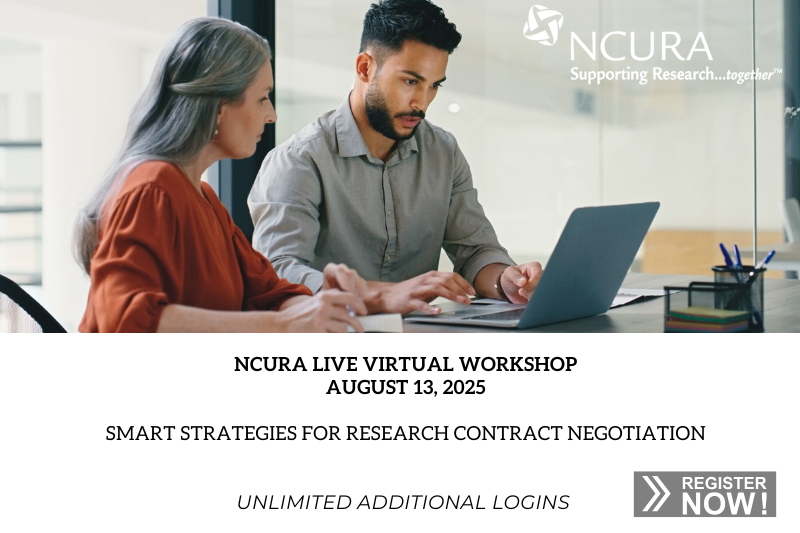Subject: NCURA Live Virtual Workshop! Smart Strategies for Research Contract Negotiation * Unlimited Free Additional Logins!
