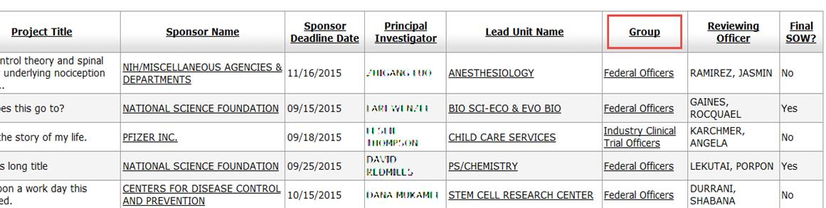 o Instead of the Team listed in the Preliminary and Institutional Review Queue, it will now be the Group